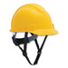 Short Brim Hard Hat, 4-point Ratchet Suspension, Vented, Yellow