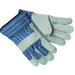 Select Split Cow Gloves, Large, Blue Fabric w/Yellow Stripes