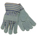 MCR Safety 1450L Select Split Cow Gloves, Large, Leather, Gray/Brown w/Blue/Yellow/Black Stripes