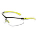 Klondike KD7 Series Safety Glasses, Polycarbonate Clear Lens/Black Frame, Hi-Vis Lime Temple, Duramass Hard Coat