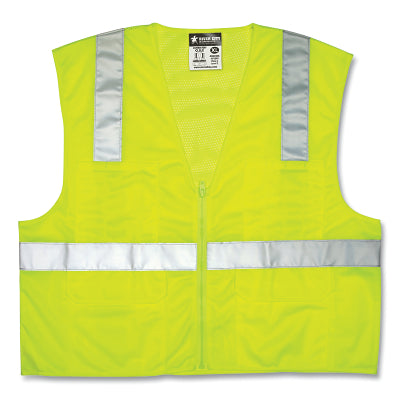 MCR Safety CL2LCX3 CL2LC Class 2 Polyester Mesh Safety Vest 3X-Large Fluorescent Lime