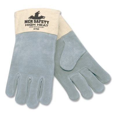 MCR SafetyMCR Safety 4750 4750 High Heat Gloves, Treated Green Split Leather, Double Wool Lining, Gray, X-Large